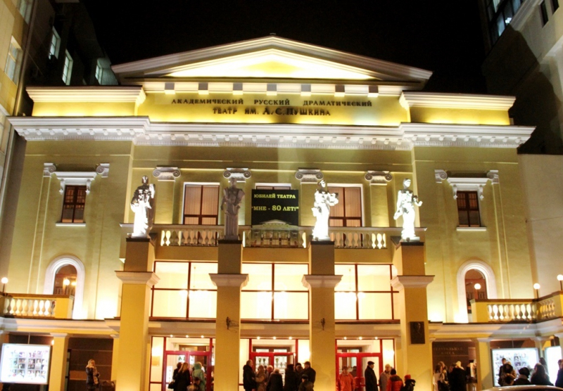 В 1949 году в честь 150-летия А.С. Пушкина театру присвоили имя русского поэта.